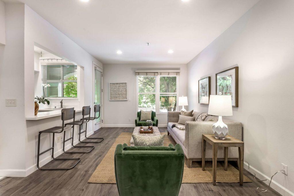 Live, work, and play in this modern condo situated in the heart of downtown Mountain View. Newly renovated 2 bed, 2 bath home of 1,004 sq. ft. features stylish and contemporary finishes coupled with a seamless and open floorplan. Designer touches include quartz countertops, recessed lighting, laminate floors, new carpet, custom light fixtures, and in-unit washer and dryer. Two story, split floorplan provides flexibility and privacy, with one bedroom and one full bath located on the first floor, with the master suite on the second floor. Remodeled chef’s kitchen flows out to an open and spacious living and dining area, creating the perfect space for hosting.