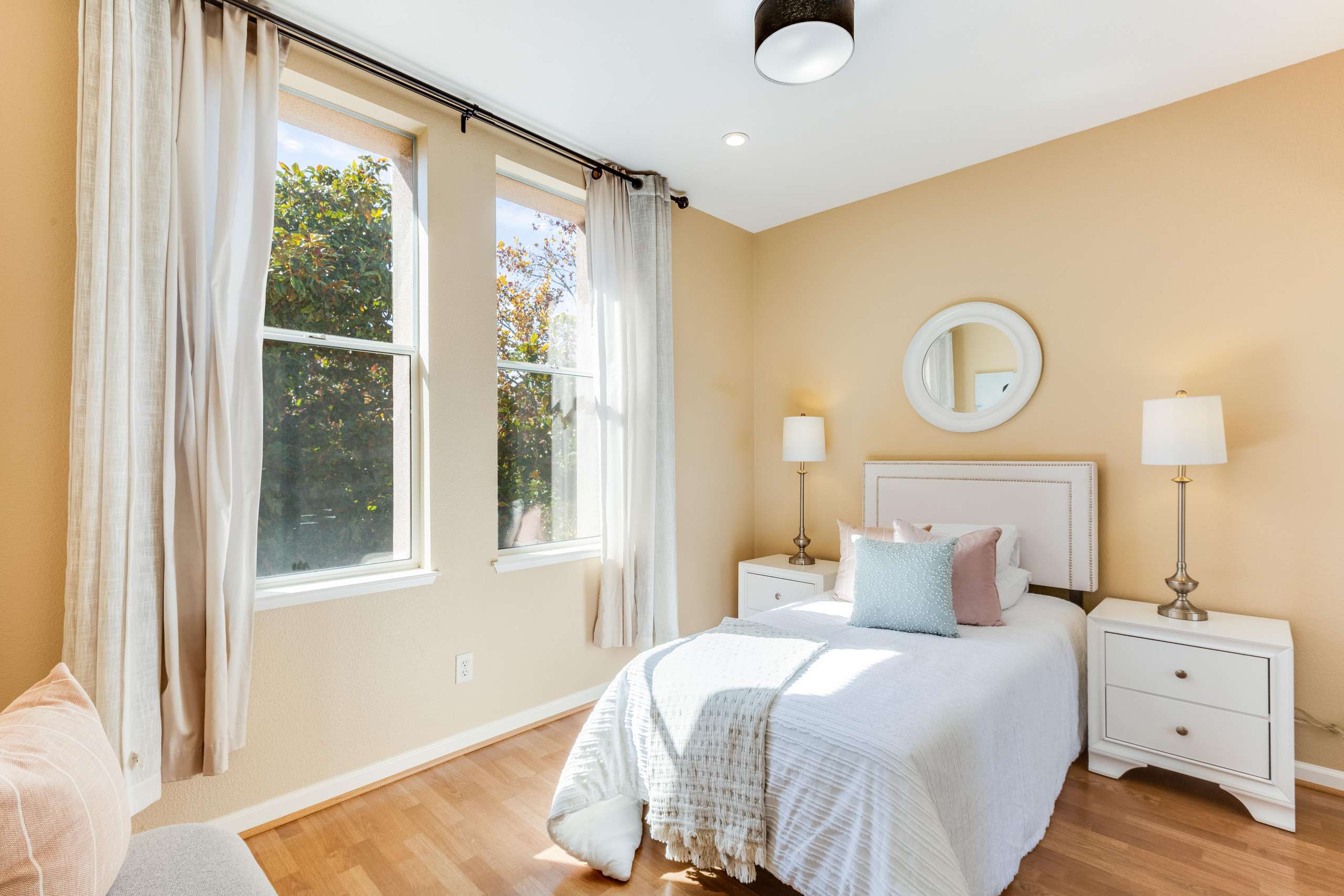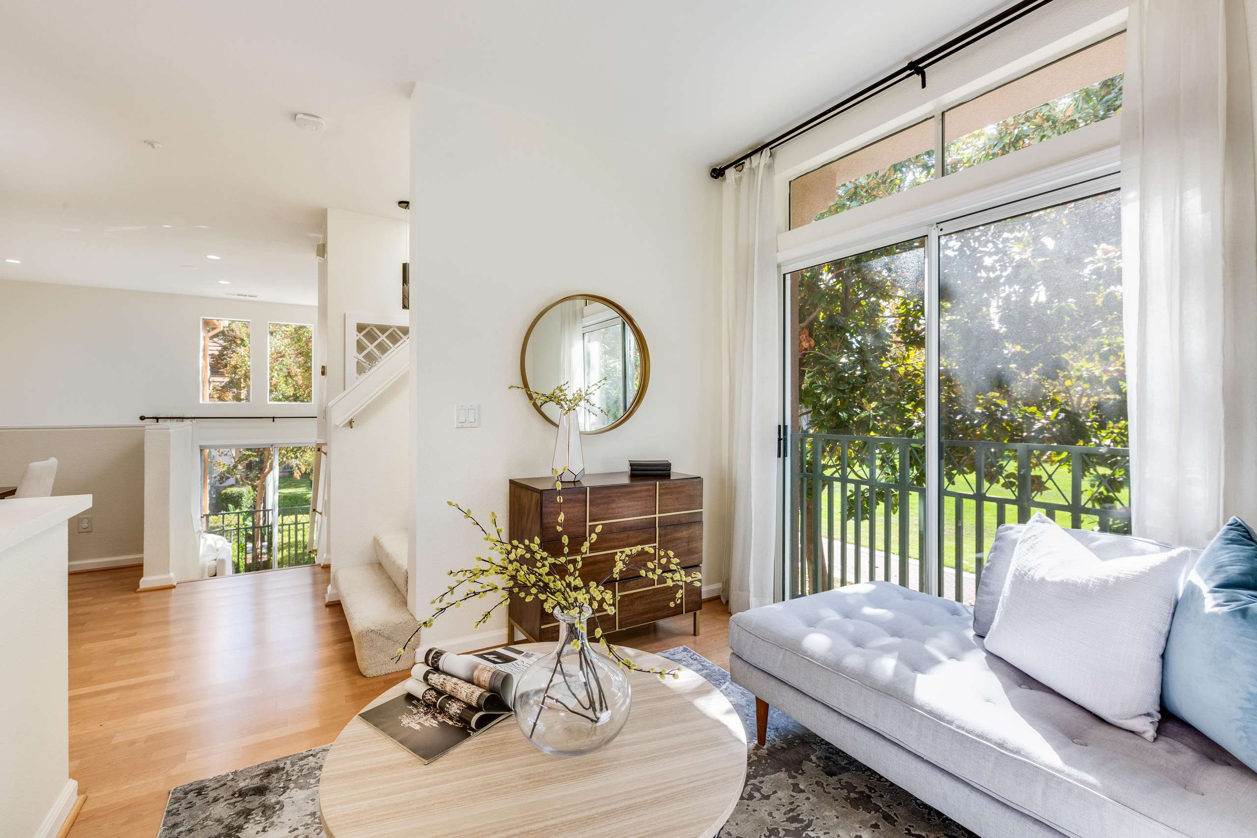 Gorgeous updated townhome situated in sought after Whisman Station neighborhood in Mountain View. Desirable and efficient floor plan make this home extra light and airy. Perfect end-unit location offers extra privacy and natural lighting throughout while overlooking Magnolia Park. Surrounded by mature flowering magnolia and myrtle trees, creating seasonal foliage views downstairs and the feeling of being in a sunny treehouse upstairs. Spacious 3 bed, 2.5 bath, 1,440 sq. ft home with open concept living, updated kitchen, and soaring 13 foot ceilings in the living room.