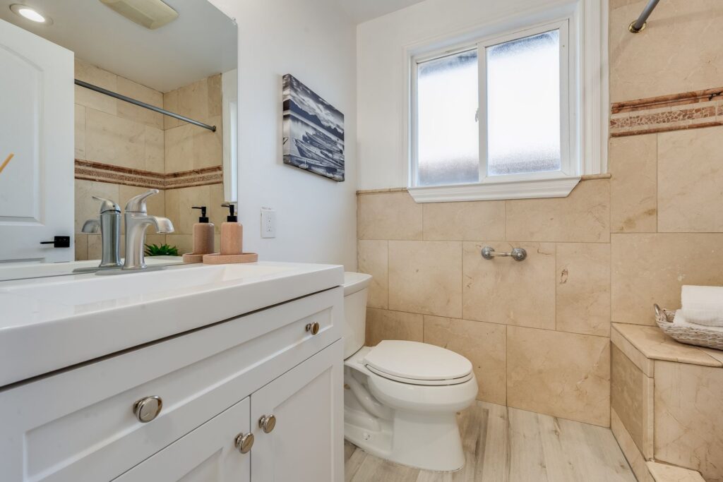 Private entrance, contemporary design, and paid-off 6.80 kW solar for lower electric bills. The island kitchen showcases custom cabinetry and a striking backsplash, opening to a comfortable living/dining zone. The generous primary suite adds a walk-in closet and sleek glass-enclosed shower; the second bedroom (also with a walk-in) flexes for guests, family, or a home office. Ideal for extended family or as a strong income unit.