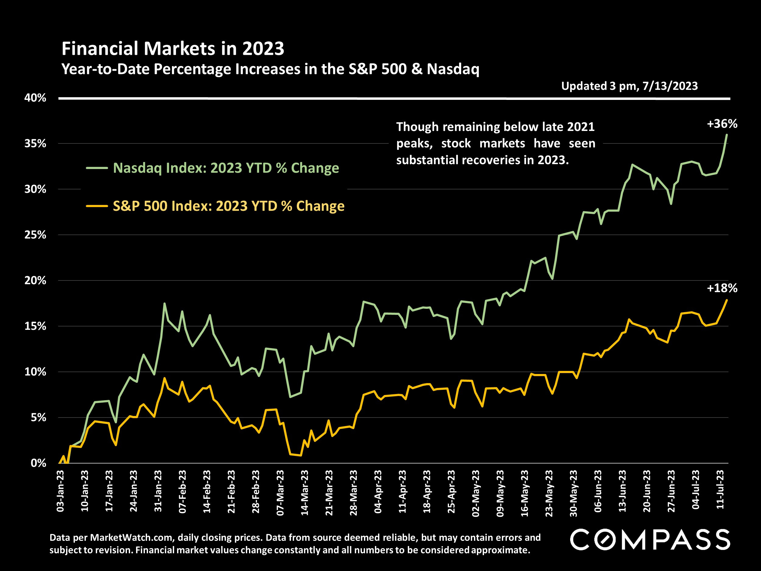 The Bay Area real estate market typically tracks the technology heavy Nasdaq index. As the Bay Area is home to many large technology companies, the stock market performance of these companies has a big impact on the local economy.